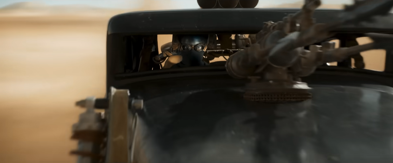 챕터 3 "도주"의 액션씬이 시작되기 전 사막의 지평선과 도로에 나타난 임모탄의 문장은 영화의 가짜 사막에 대한 자신감 같아 보이기도 하다.