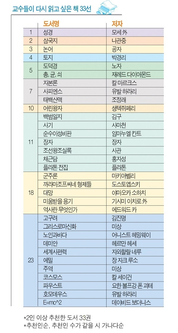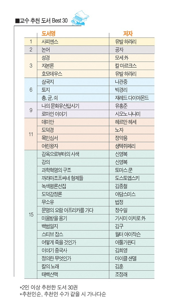 교수 추천 도서 1위 '사피엔스'⋯ “융합적이고 쉬운 글쓰기에 매료”