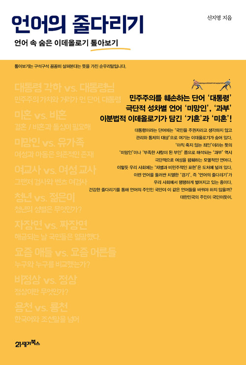 『언어의 줄다리기』에서 신지영 고려대 교수는 말한다. 이 책은 우리가 흔히 사용하는 일상어에 감추어진 수많은 편견들을 구석구석 추적해 폭로함으로써 한국어를 현대 민주주의사회에 걸맞은 언어로 진화시키려는 야심을 품고 있다. ‘권력의 목 베기’라고 할까, 이 책은 한국어에 깊숙이 새겨진 온갖 병리성을 제거하기 위해 ‘대통령’이라는 용어부터 바꾸자고 주장한다. 왜 그래야 할까.
