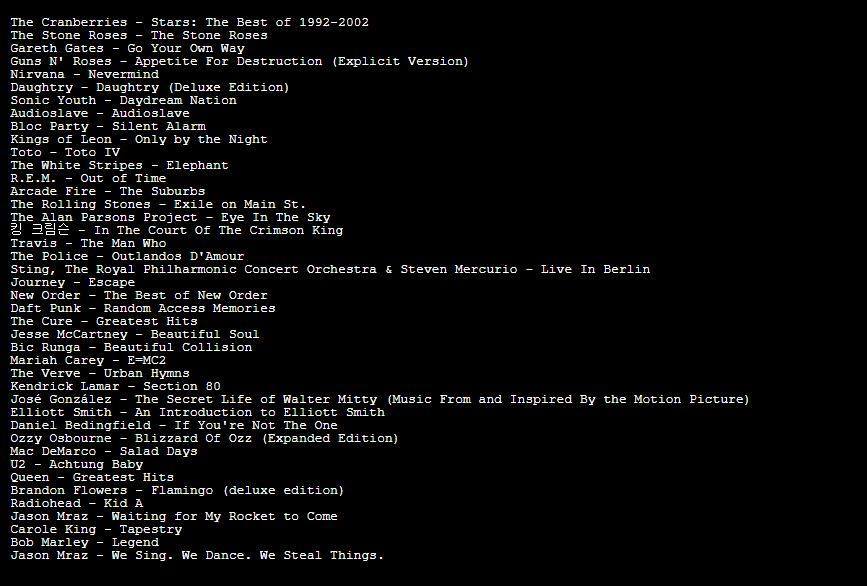 평론가들이 흔히 매기는 'GOAT(Greatest of All Time)' 차트는 아니다. 그보다는 '내가 살면서 가장 열심히 들었던' 앨범 목록에 가깝다.