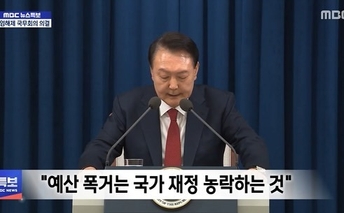 세계 최고 수준의 대중교통 인프라를 가진 나라답게, 아직 지하철은 잘 운행되고 있었다. 2호선을 타고 집으로 돌아오며 대국민 담화 영상을 봤다. 대통령이라는 사람은 ‘예산 폭거’라는 단어를 반복해서 말하고 있었다.