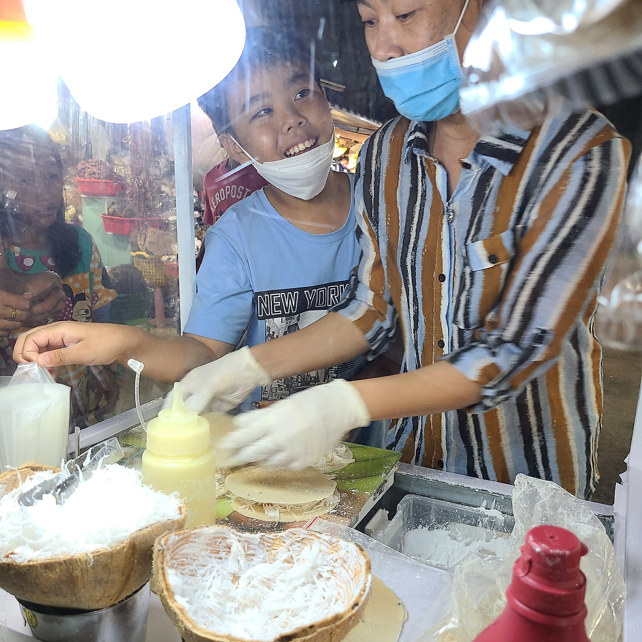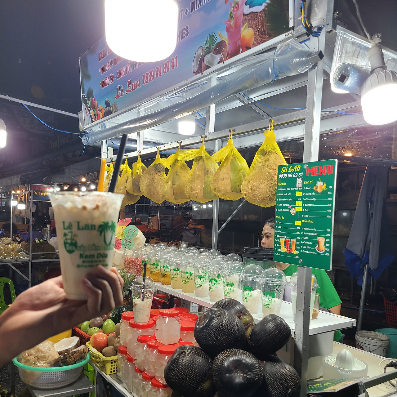 푸꾸옥의 야시장은 두 곳이 있는데 한 곳은 전날 밤 다녀온 그랜드월드 야시장, 다른 한 곳은 시내에 위치한 이곳이다. 이곳의 야시장은 진주 가게부터 한국어를 쓰며 호객을 하는 땅콩가게들과 다양한 간식들로 가득하다.
