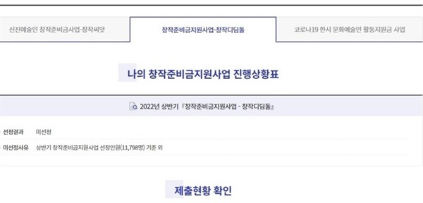 지원금 대상자 공지 방식도 미선정자들을 위한 배려가 없다. 신청 인원이 많음을 감안해도 그렇다. 어제 2시 30분쯤 지원금 선정자 공지를 문자로 받고 홈페이지에서 확인하는데 접속자가 많은 때문인지 창작준비 시스템에 로그인이 되지 않아서 여섯 시간 넘게 애태우며 모니터 앞에 있었다. 차라리 선정 여부를 문자로 공지했으면 속은 상하겠지만 여섯 시간이나 모니터 앞에서 애태우지는 않았을 것이다. 기다리는 사람 심정도 좀 헤아렸으면 한다