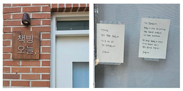 마침내 경복궁역에 도착했다. 지하에서 지상으로 올라오자 서울의 푸른 하늘이 보였다. 구름 한 점 없는 완전한 푸르름이다. 박노해 사진전이 열리는 '라 카페 갤러리'를 가는 길에 한강 작가와 인연이 있는 서점 '책방오늘'이 있었다. 다른 오늘이 찾은 책방오늘이다.