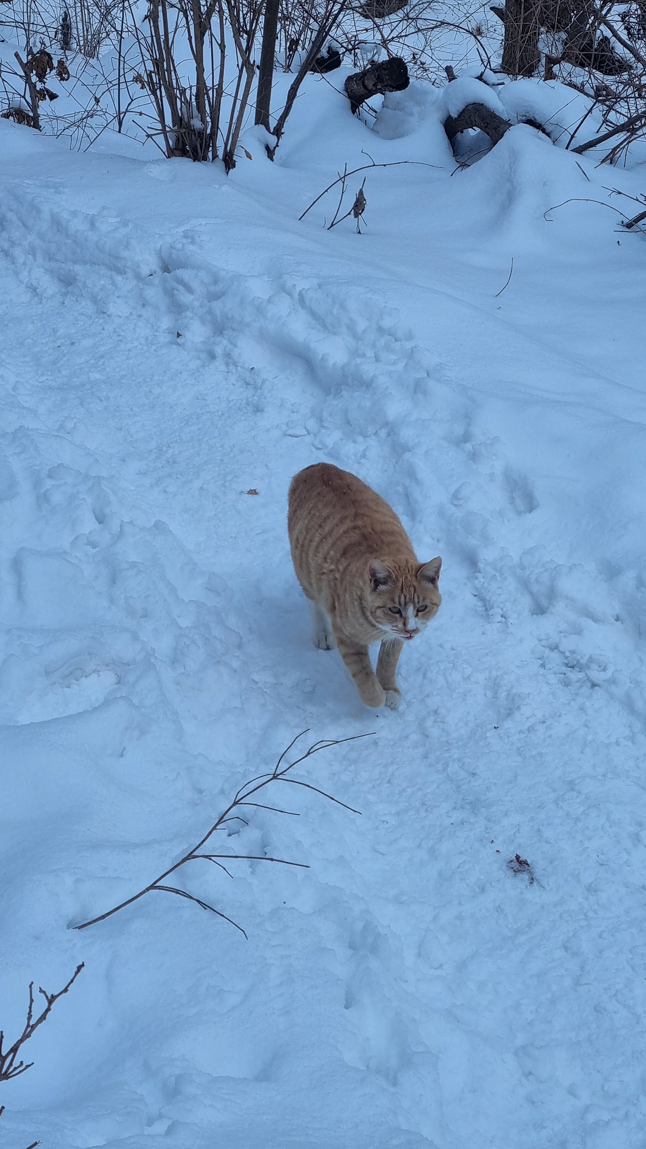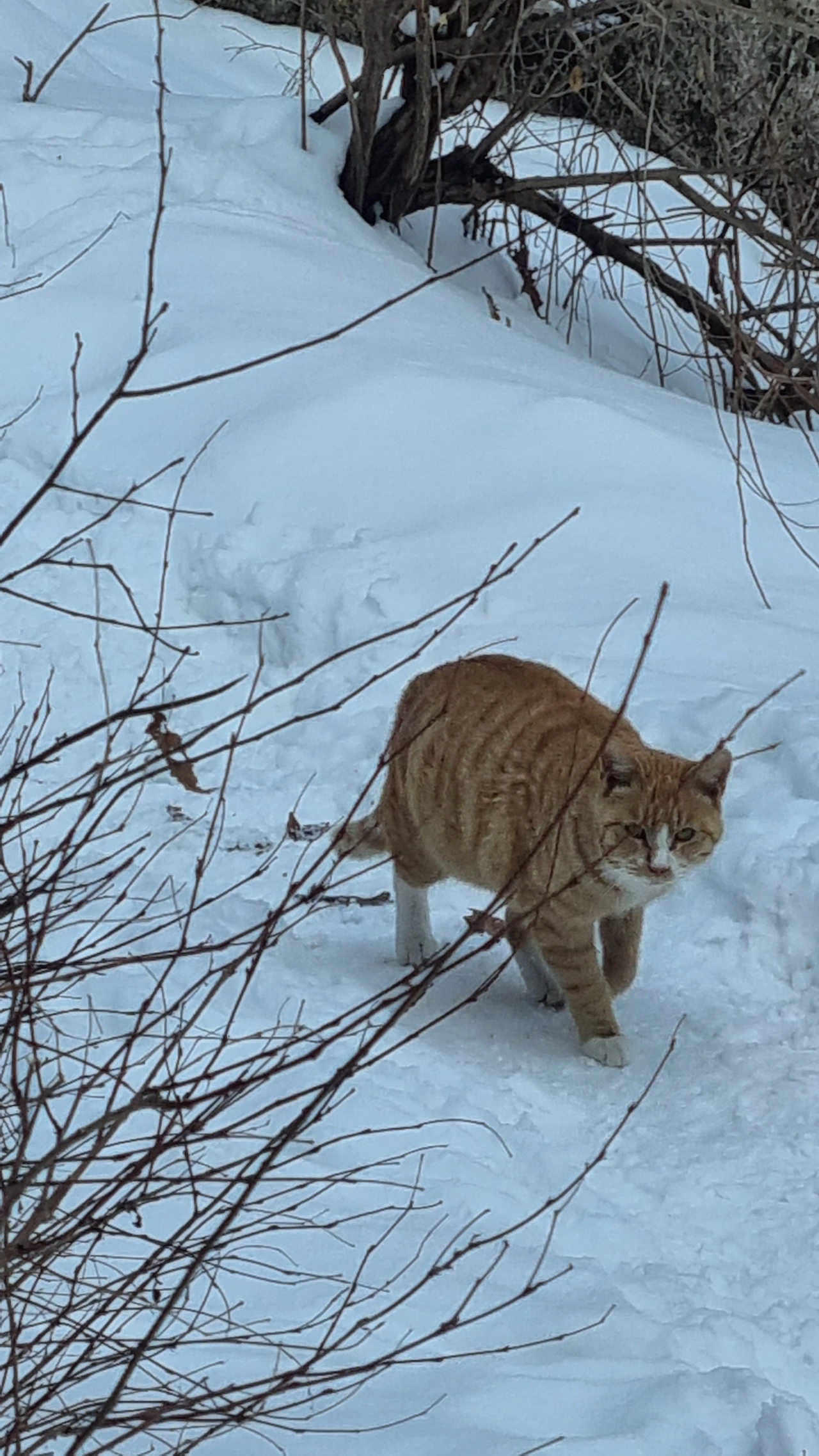 고양이들의 눈길을 느끼며, 하얗고 폭신한 눈 길을 뽀드득거리며 터벌터벌 걸었다.