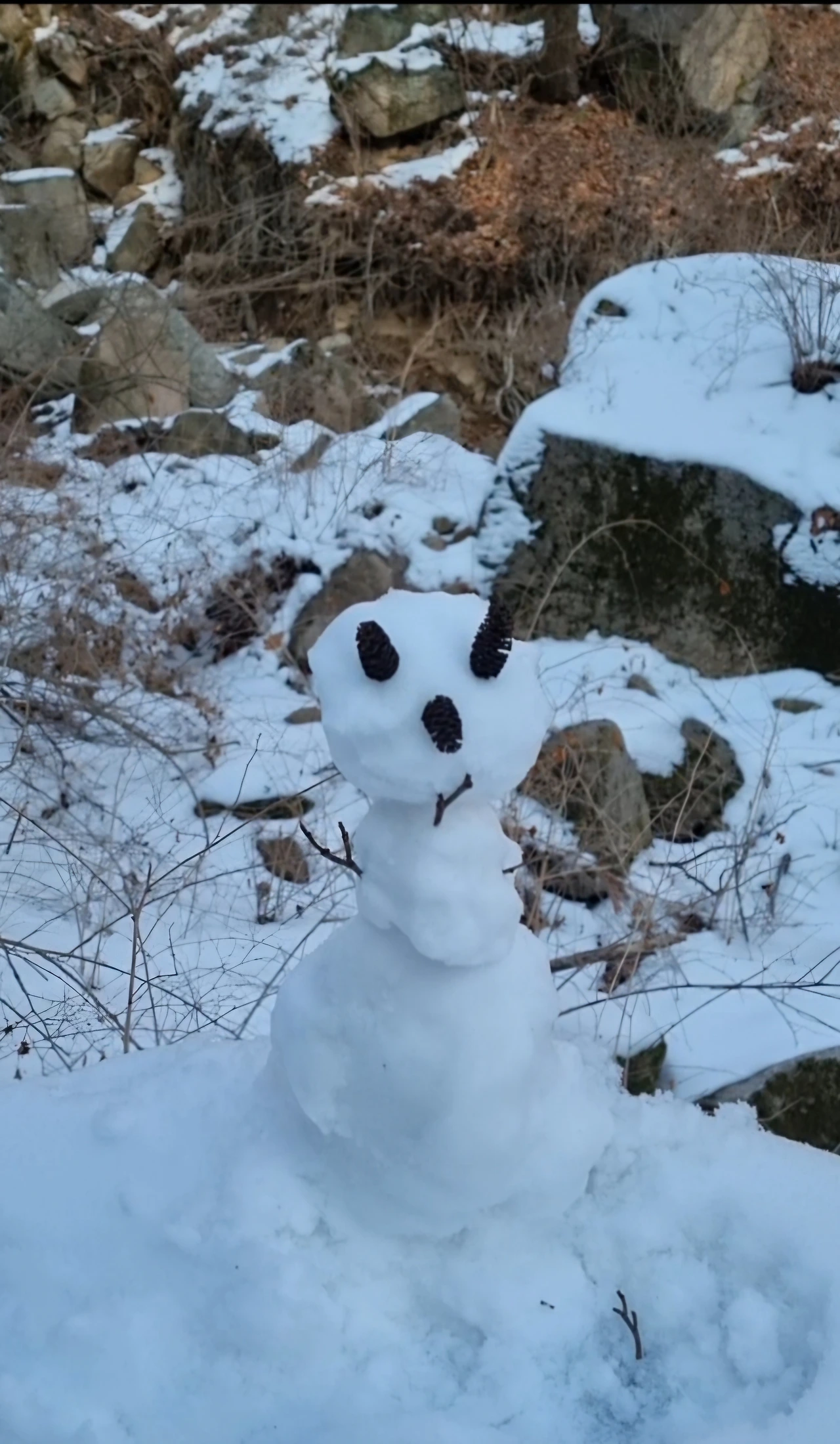 올라가다가 미니 눈사람을 만들었었는데 하산하다 보니 누군가 처참히 뭉개놓았다.
