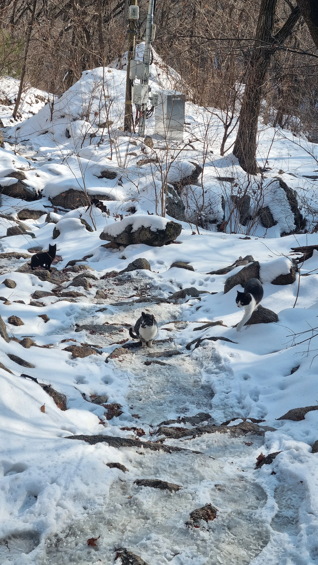 서울 근교 산에는 유난히 고양이가 많다. 토실토실 살이 올라서 여기저기서 어슬렁거린다.