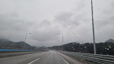 날이 궂어 차가 별로 없는 고속도로가 낯설다. 달려~
