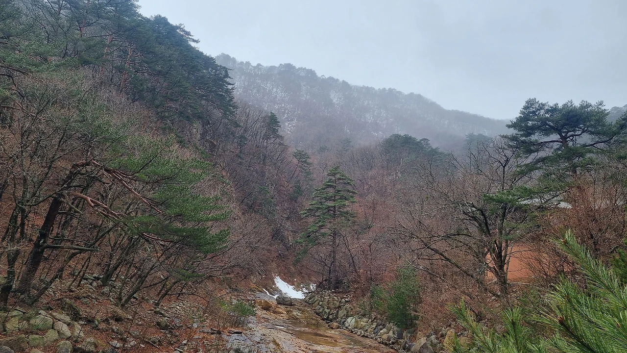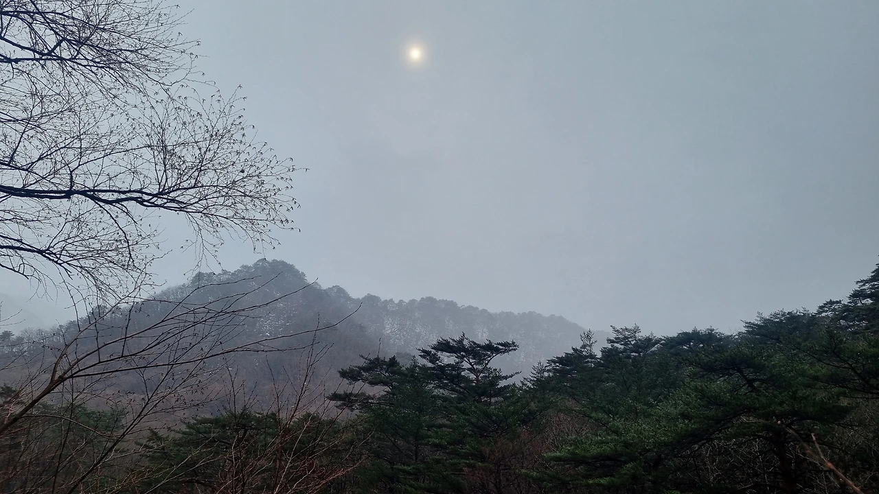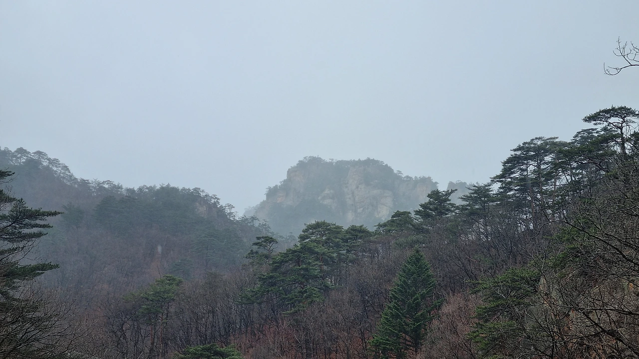 산 위에 걸린 이불솜 같은 구름이 눈과 마음을 빼앗는다