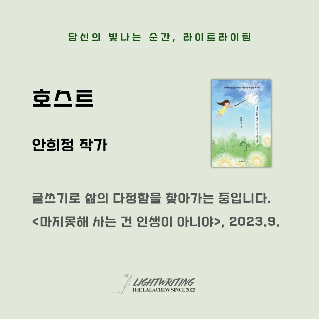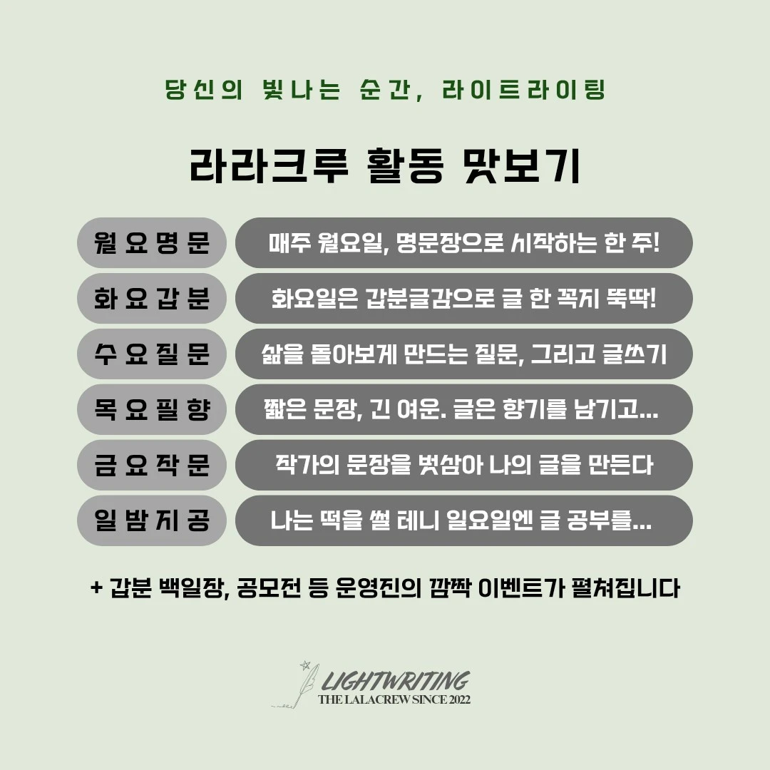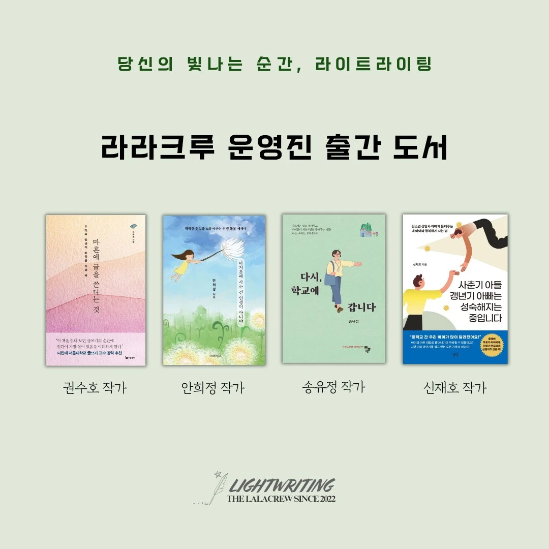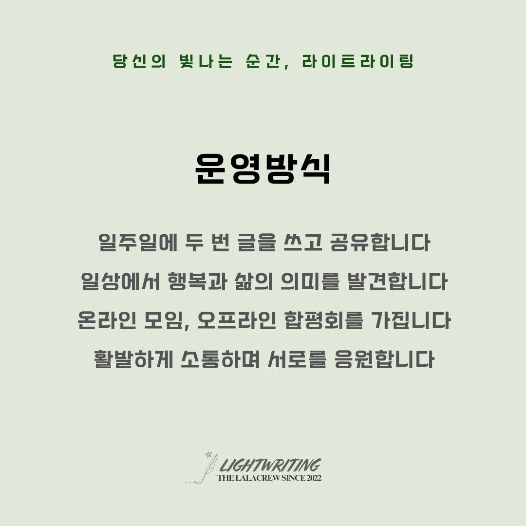 서로의 색깔로 글쓰기를 하며 서로가 서로에게 선한 영향력을 준다면 이보다 멋진 일은 없겠지요