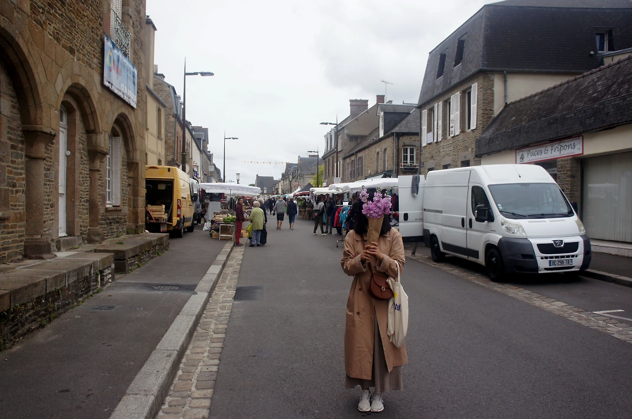 늦점심이면 파장이라고 해서 얼른 채비를 하고 10여분 차를 달려 퐁토르송(pontorson)에 갔다. 마을 초입 장날이라기에는 너무 조용해서 잘 찾아온 것이 맞을까 걱정하는 사이 멀리 귀여운 갈랜드가 눈에 들어왔다.