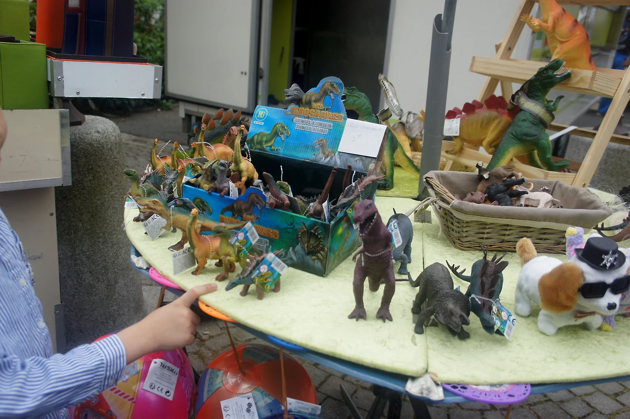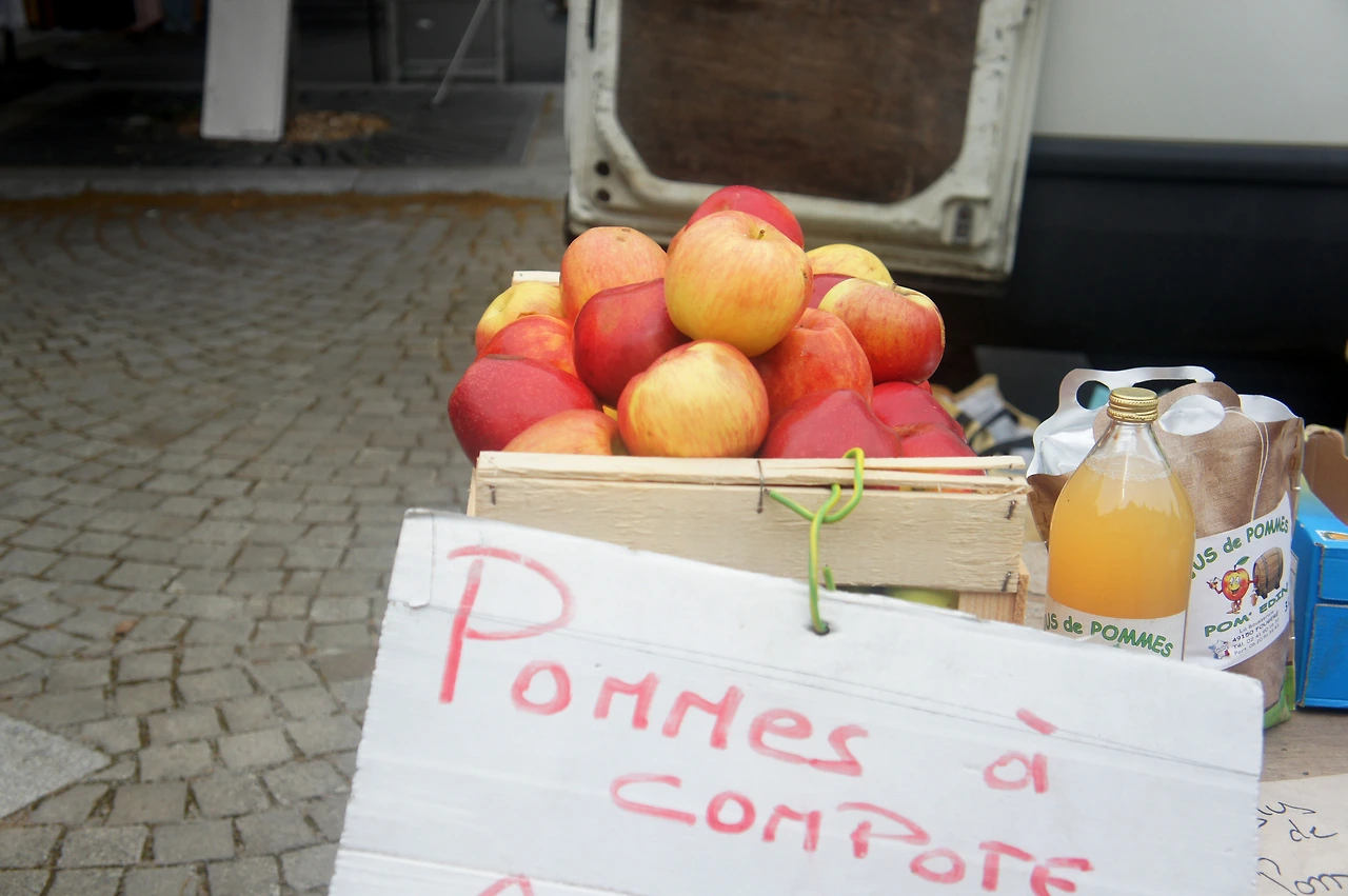 어느 나라나 시골 장날의 풍경은 모두 닮아있겠지. 제일 처음 만난 것은 싱싱한 채소와 과일들이었다. 그중에서 아는 것과 모르지만 알 것 같은 채소를 구경하는 재미가 좋았다. 꽃 화분과 중고책, 할머님들을 위한 편한 신발과 가벼운 천가방을 파는 곳도 있고 허브 모종과 치즈, 올리브 절임, 비누, 수제 소시지와 햄을 잘라 파는 곳도 있다. 무엇보다 치킨과 잠봉 jambon 굽는 트럭은 단연 인기가 좋았는데 그 냄새가 정말 어마어마했다. 그나저나 (그놈의) 공룡은 만국 공통이었던가보다. 그 와중에 장난감 매대를 결국 찾아낸 우리 태오는 3유로짜리 브라키오사우르스를 얻어냈다.