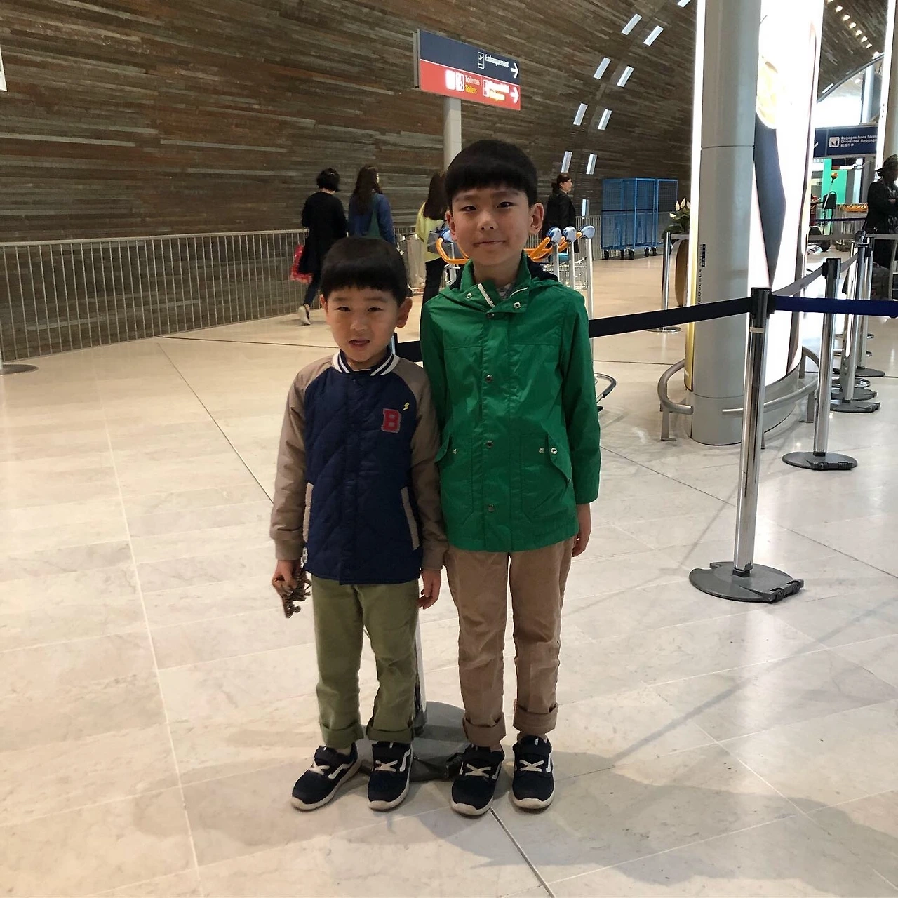 한국으로 돌아가는 이른 비행기를 타려고 곤히 자는 아이들을 깨웠다.