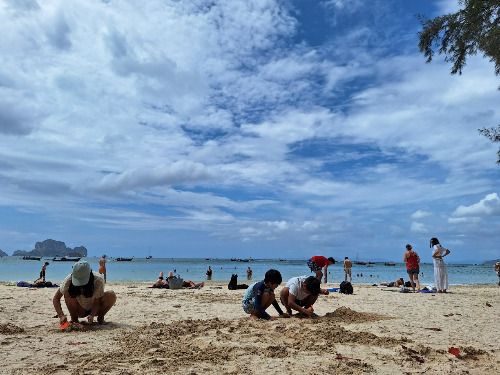 그리고 물을 좋아하니 끄라비에 머무는 것으로 충분할 것이라 생각했는데 아이들은 생각보다 물에 들어가는 것을 좋아하지 않는다. 아이들은 제주의 바다가 더 놀기 좋다고 생각하고(여기는 물벼룩이 있어서 물놀이중 따끔 따끔 문다. 제주에서는 물벼룩에 물리는 일은 없었다. 그러니 물에 들어가기 전에 약간의 긴장이 동반되며 들어가서 물리면 이내 나오고 싶어진다.) 그렇다면 물고기를 보고 싶은데 그러면 깊은 바다를 가야하고 투어를 해야하는 것이다.