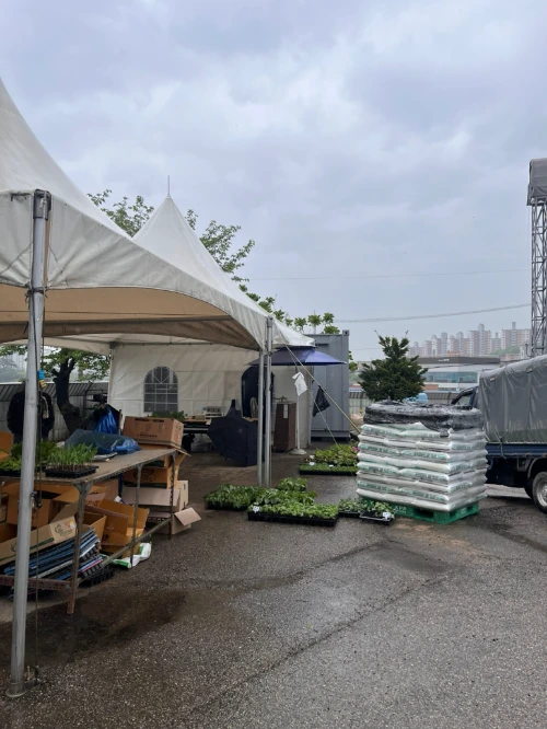 농협 건물 오른쪽에 보면 천막이 쳐져 있는데 거기에서 모종을 팔고 있다.