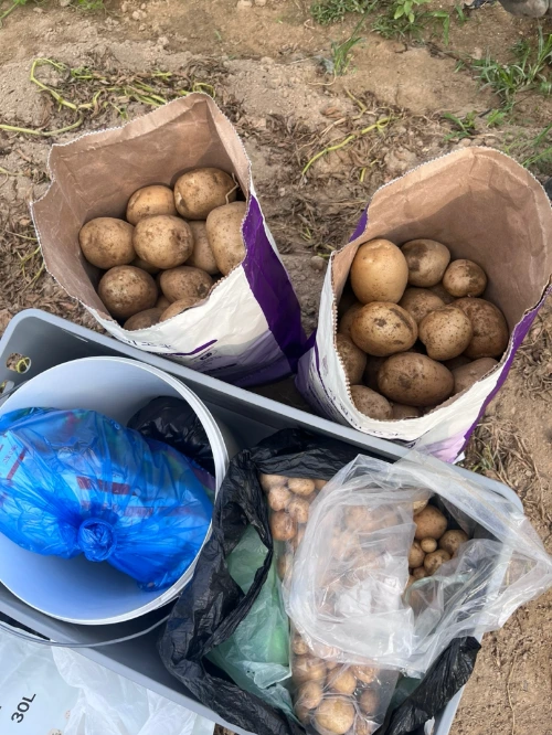 우리는 수미감자 씨감자를 텃밭지기님 통해 구매해서 40개 정도를 심었는데 2주 정도 일찍 수확해서 심은 씨감자 수에 비해 수확량이 적은 편이다. (아쉽지만 내년에는 제때 심는걸로)