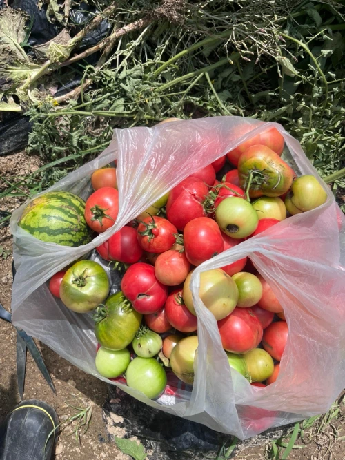 20분 간 허리도 못 피고 땀 한바가지 흘려가며 가지치기 + 토마토를 땄더니 이렇게 봉지 한가득 토마토가 쌓여있었다.