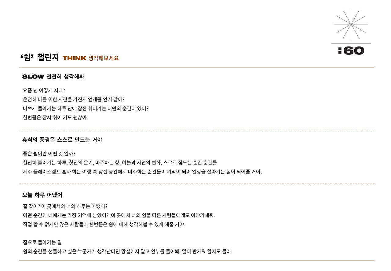 Voyage to Rest 01. 식스티세컨즈의 '쉼 챌린지' 제안