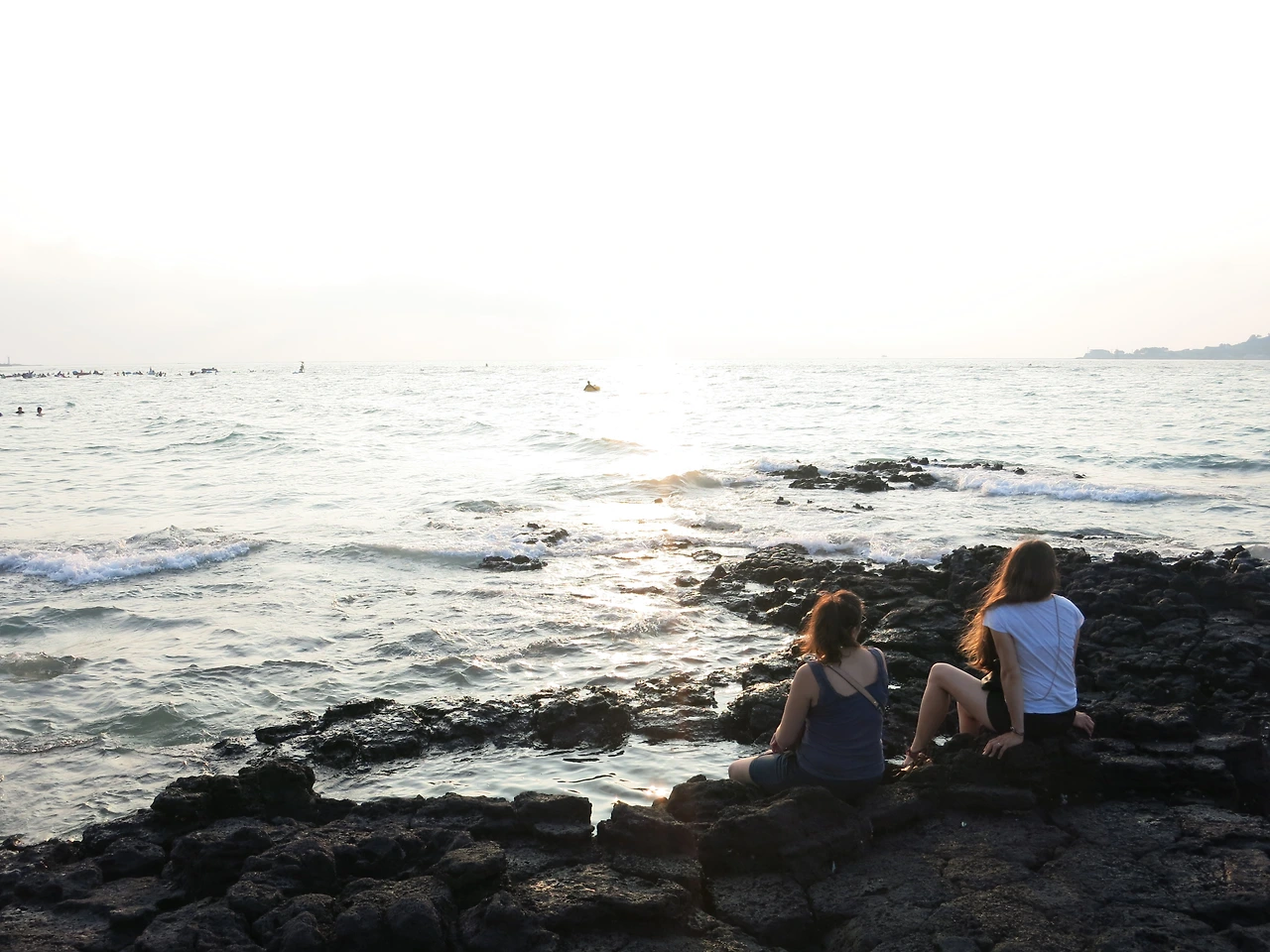 (협재 해수욕장 앞에서 우리는 해가 완전히 질 때까지 바다만 바라보았다.)