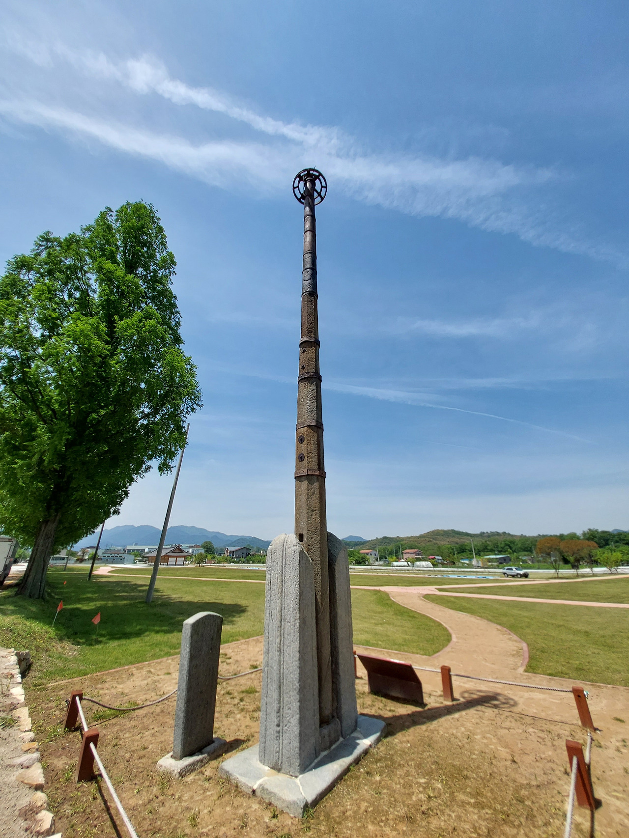 이런 석당간은 전라남도 나주나 경상남도 양산에도 있다고 하는데, 담양의 석당간처럼 끝부분에 바퀴 모양의 보륜寶輪 장식이 있는 건 없는 듯했다.