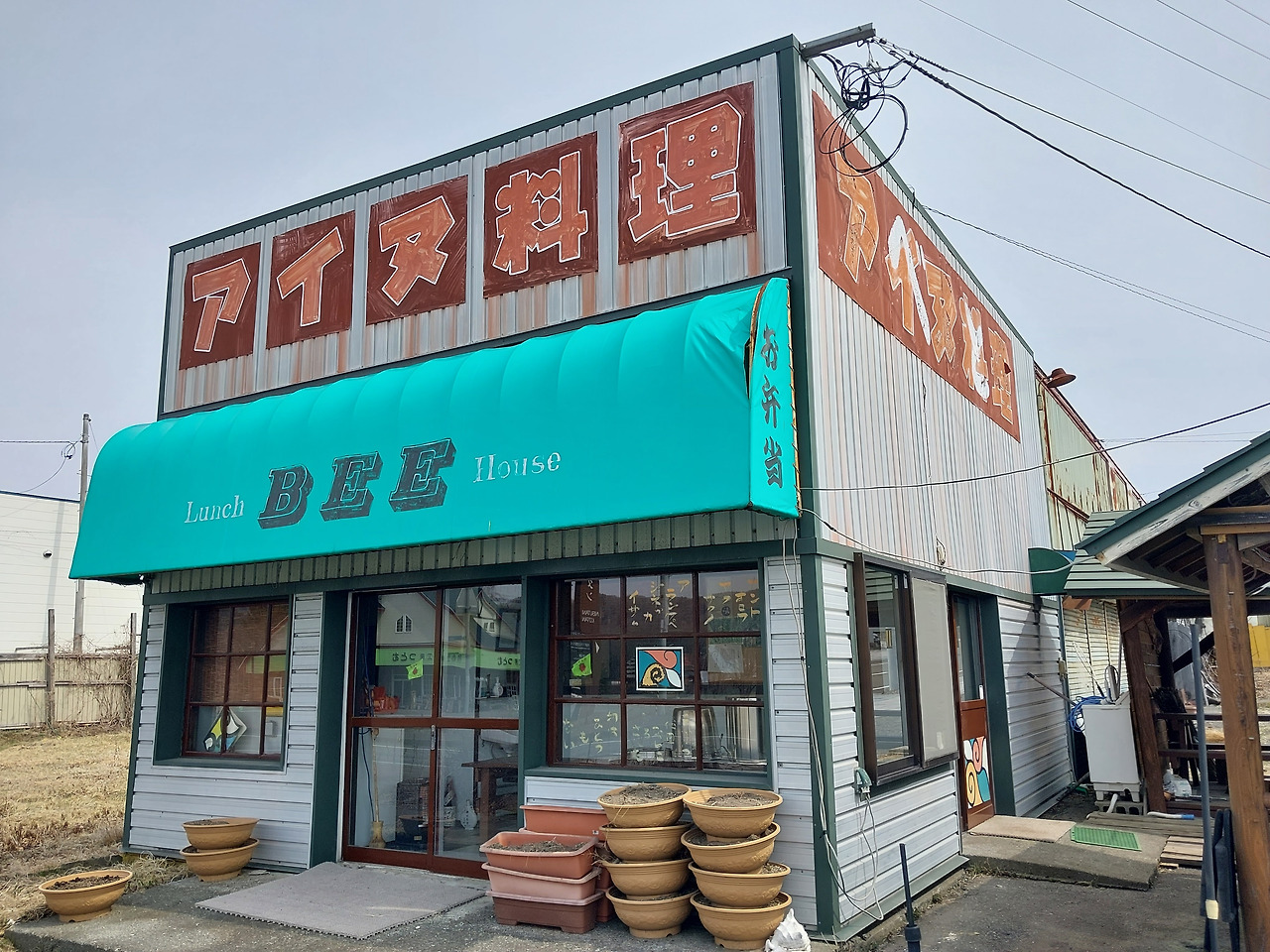 한국이나 일본이나 으레 그렇듯 시골은 쇠락해가고 있었다. 이곳은 황량한 오지 시골이었다. 간판에 큼지막한 글씨로 써진 "아이누 요리"가게는 간판에서 세월의 풍파가 느껴졌다. 아이누 전통 요리로 도시락을 파는 가게인 듯했다. 궁금해서 들여다보니 안에는 아무도 없었다. 나중에 찾아보니 하절기 점심대에만 잠깐 영업하고, 그마저도 예약제로 운영하는 가게였다.