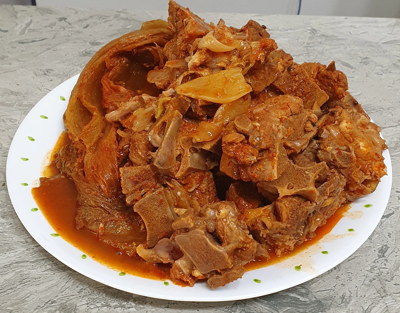 잘 졸여진 등뼈는 살이 부드럽게 떨어진다. 김치는 짭짤하면서 감칠맛이 돈다. 밥 한 술 뜨고 고기 한 번, 김치 한 번 먹다 보니 어느새 밥그릇이 비워지고 접시에 가득했던 등뼈김치찜도 동이 났다. 뼈 담으라고 놓아둔 대접이 뼈로 가득 찬다.