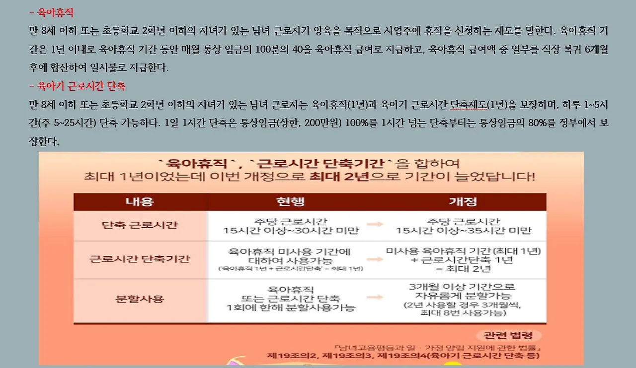 나는 혜택을 받을 수 없지만 육아휴직과 육아기 근로시간 단축에 대해 꽤나 진지하게 검색해봤다.