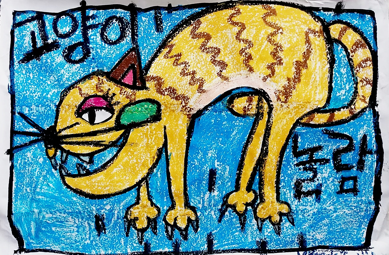 산책 길에 우리 집 순봉이를 보고 놀란 고양이