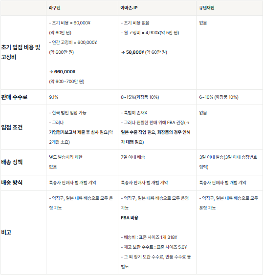 오늘은 플랫폼마다 비용/입점/배송에서 어떤 차이가 있는지, 어떤 순서로 일본 진출을 권하는지 알려드릴게요. 함께 볼까요?