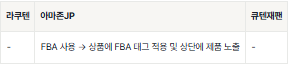 ✔️ 큐텐과 라쿠텐은 특별히 존재하지 않고, 아마존은 FBA를 사용할 때 상위 노출 가능성이 높아집니다. FBA를 사용하면 상품에 FBA 태그가 표시되면서 최상단에 제품이 위치하게 돼요. 큐텐과 라쿠텐의 경우 특별한 노출 기준은 없지만, 광고를 집행하면 기존 판매 이력이 없더라도 상단에 위치하는 광고 구좌는 존재합니다.