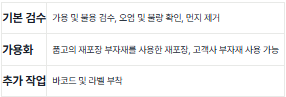 양품화가 진행된 재고는 진열 몇 전산 재고에도 자동 등록되고, 양품화가 불가한 재고는 반출 또는 폐기까지 책임지고 있어요.