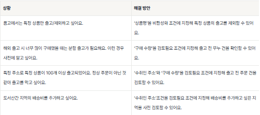 수취인 주소와 전화번호로 재판매가 의심되는 구매자를 제외하고 싶을 때 등의 경우에 사용할 수 있답니다.