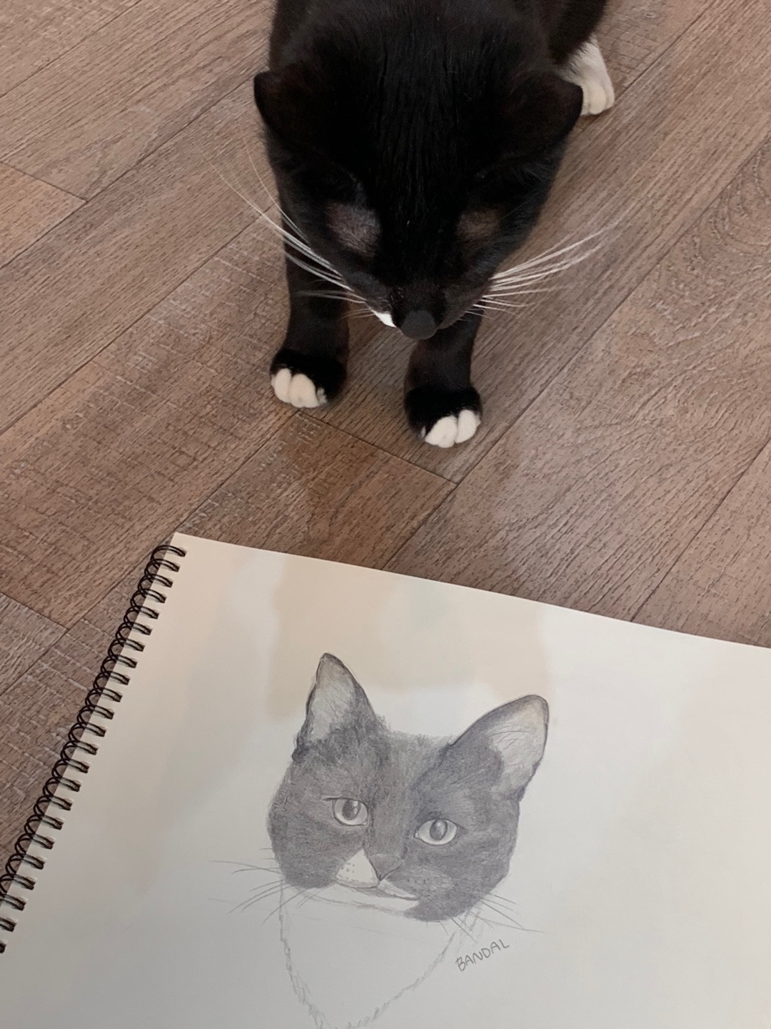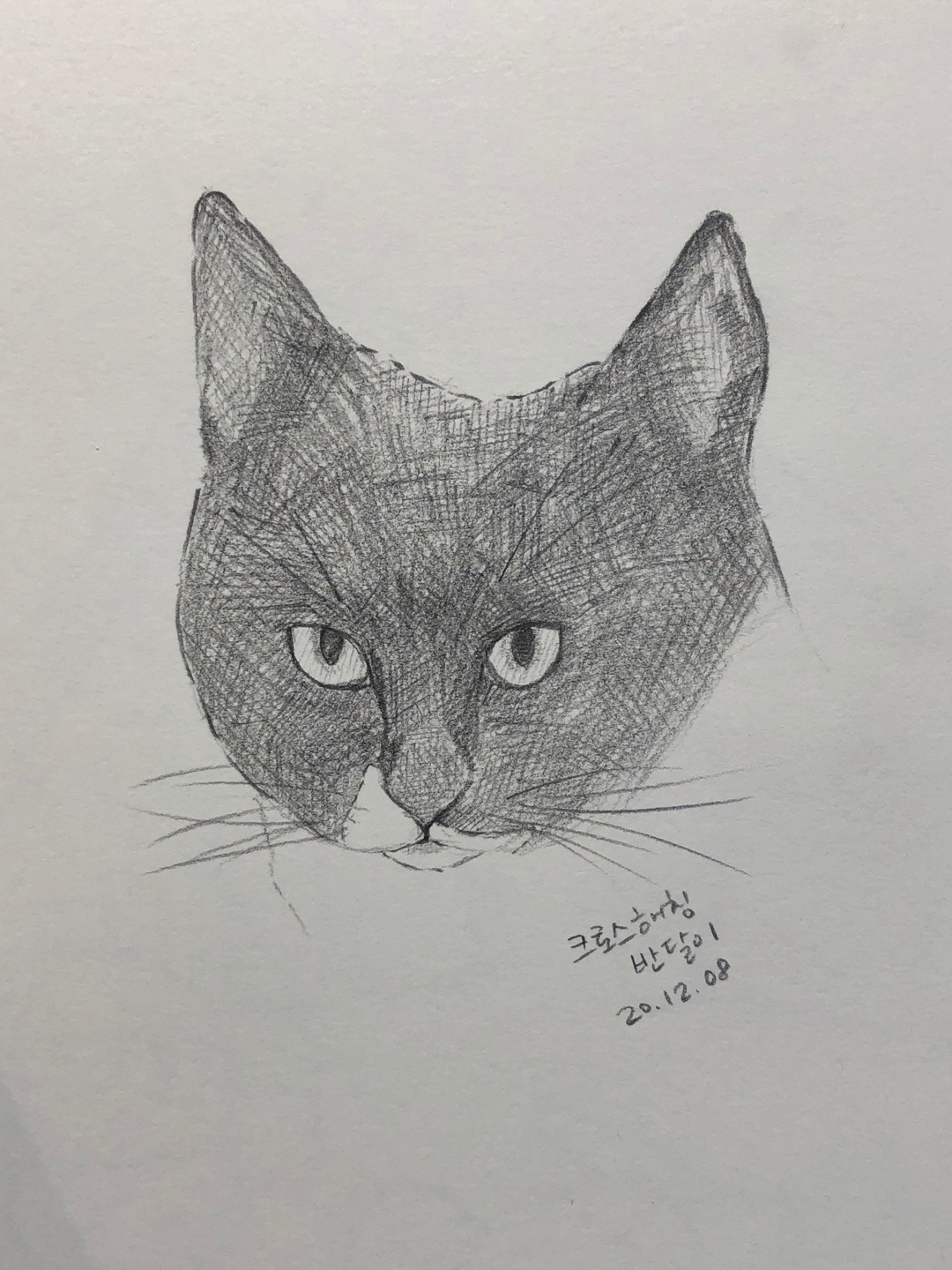 어제 자 반달이의 모습을 가져와봤습니다. 성묘가 다 된 그녀이지만, 여전히 맹한 얼굴은 그대로입니다. 물론 어둠 속에서 그녀를 마주한다면, 예쁩니다. 고양이는 어두운 곳에서 볼수록 더 예뻐 보인답니다. 사람이 술에 취하면 타인이 더 멋져(예뻐) 보이는 것과 같은 원리일까요. 그녀는 여전히 풍요하리의 뮤즈로 활동하고 있습니다. 다음 글에서는 그녀의 다른 작품들을 들고 와서 아이디어를 도출하고 작품으로 만들었던 이야기를 계속해보겠습니다.