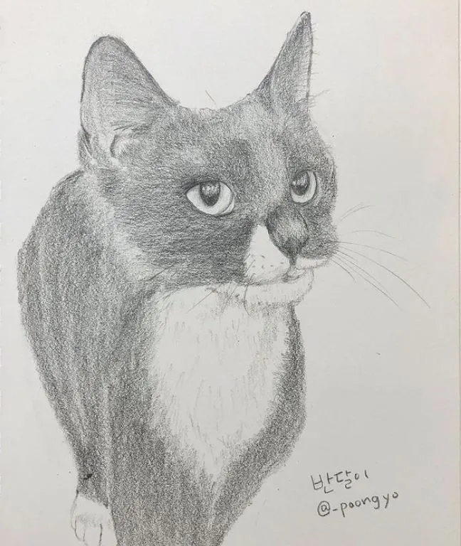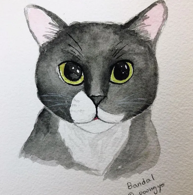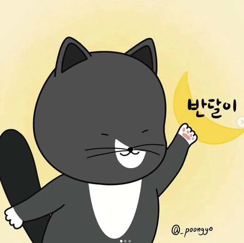 위의 그림을 그대로 따라 그렸어요. 반달이가 흰 부분은 정말 하얀데, 나머지는 완전히 블랙이거든요. 흑/백만 사용해도 반달이를 표현하기에 참 충분했답니다.
