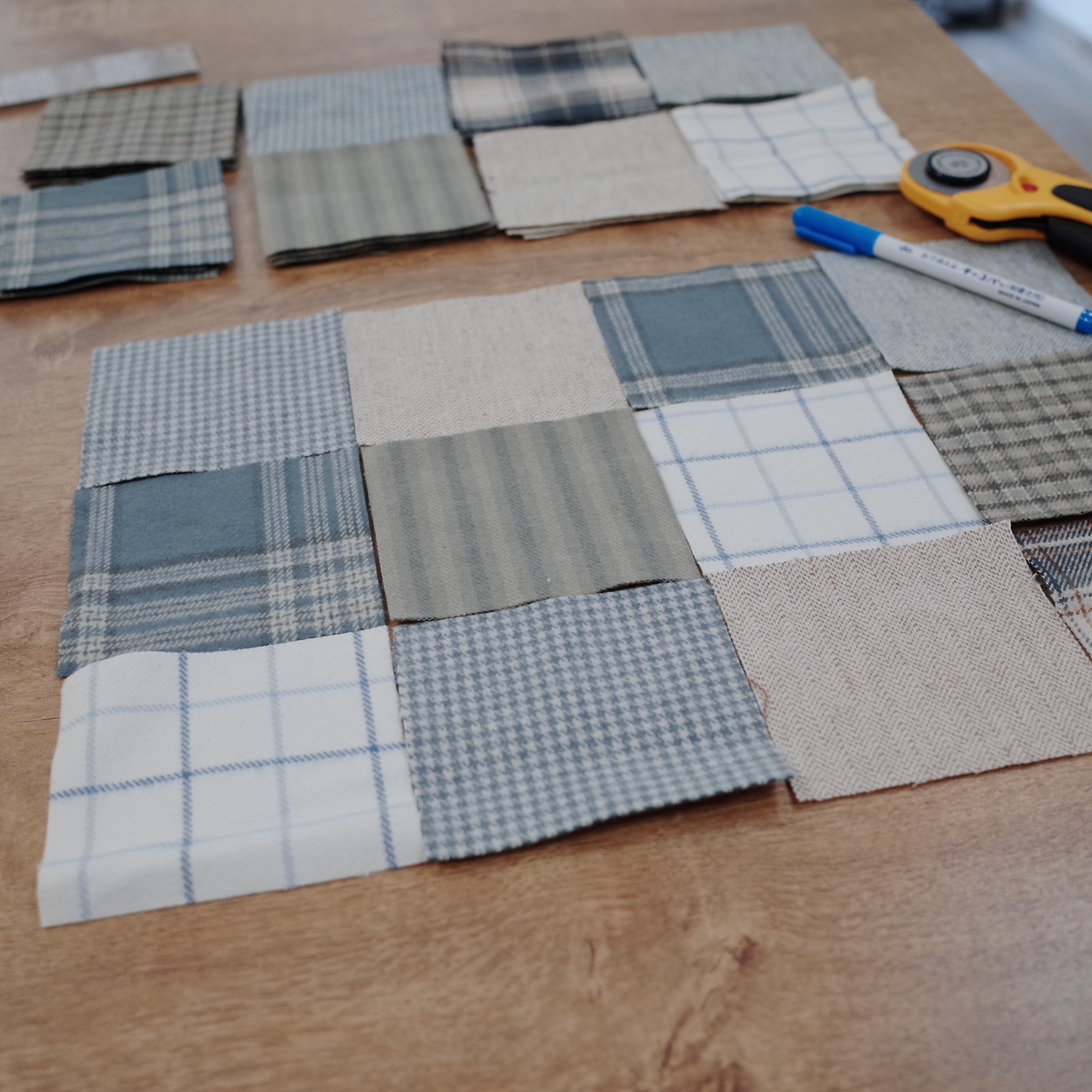 보드랍고 따뜻한 느낌의 플라넬 원단을 나인 패치(9개의 천 조각을 모아 하나의 형태로 구성하는 패치워크)로 배열하였다. 평상시 하리가 사용하지 않는 흐린 느낌의 천들을 사용했지만 새로운 도전의 의미를 두었다.