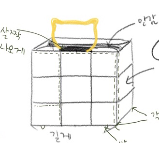 사실 이 스케치만 보고도 대충 가방 각이 잡히긴 했다. 퀼트 기법의 주 재료인 패브릭은 유연하되, 딱딱한 느낌의 각을 살린 가방을 만들기는 힘들다. 이 ‘각’을 살리는 게 이 가방의 관건이었다.