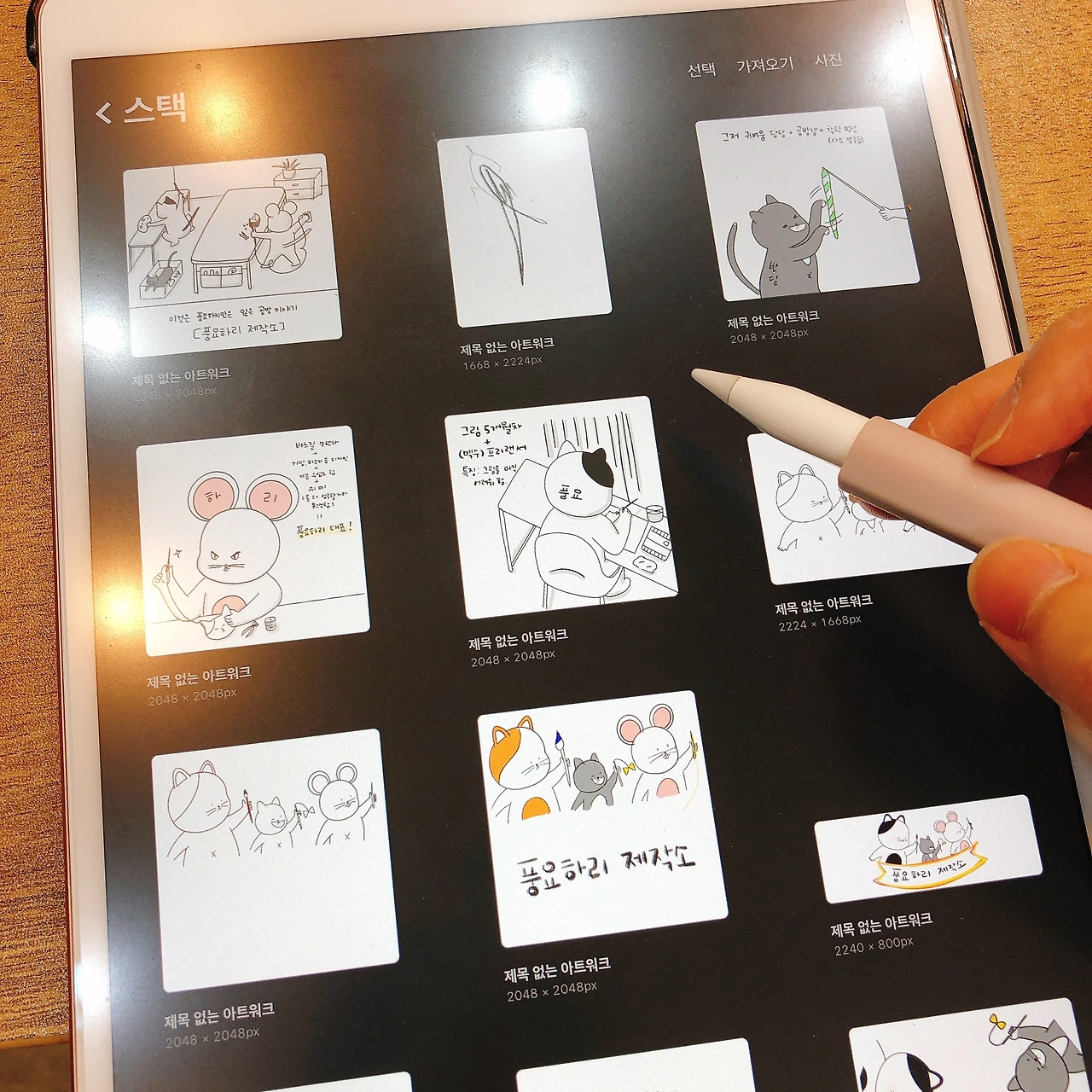 오늘은 조금 특별한 그림을 그렸다. 얼마 전부터 공방 일상을 그림으로 표현해보고 싶다는 욕망이 싹을 틔웠다. 아이패드를 구입했던 때부터 막연히 했던 생각이었다. 혼자 해보는 건데 못할 게 뭐 있나 싶어 덜컥 웹툰 기초 책을 대출했다.