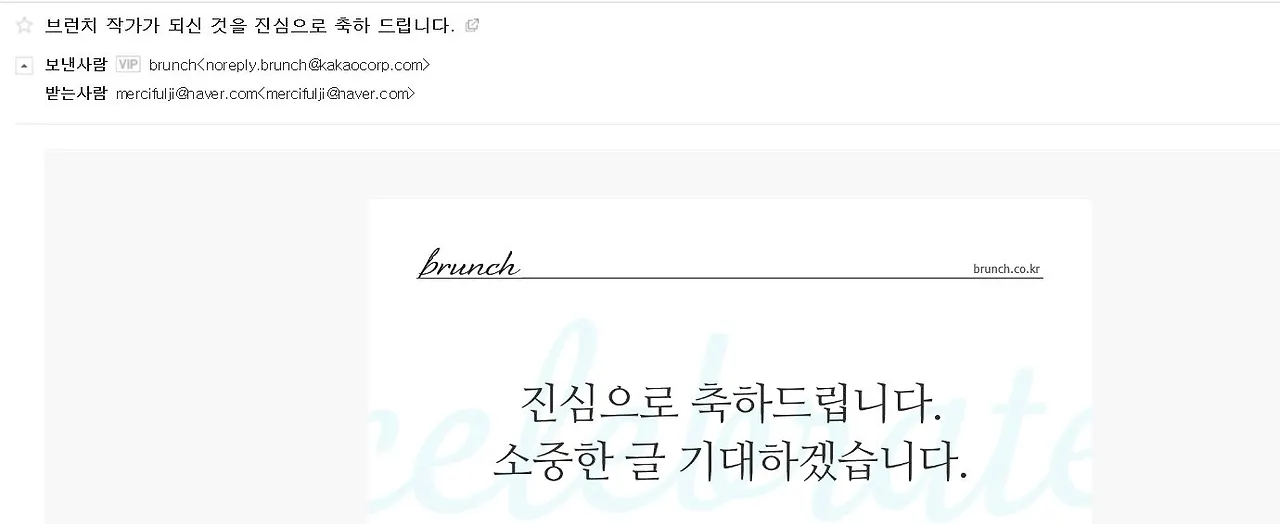 작가 신청 후 이튿날, 메일이 도착했다. [브런치 작가] 되었다는 소식.