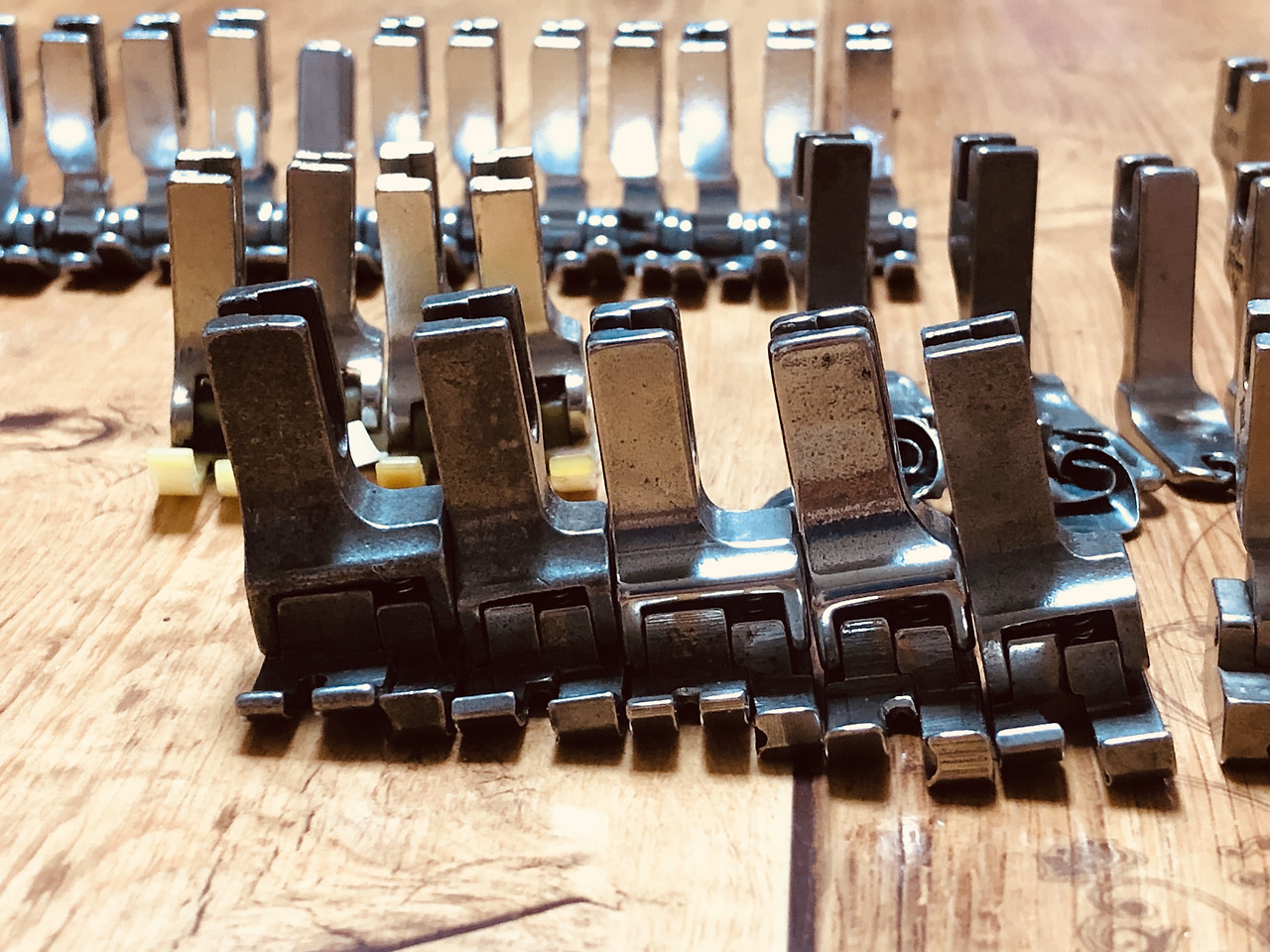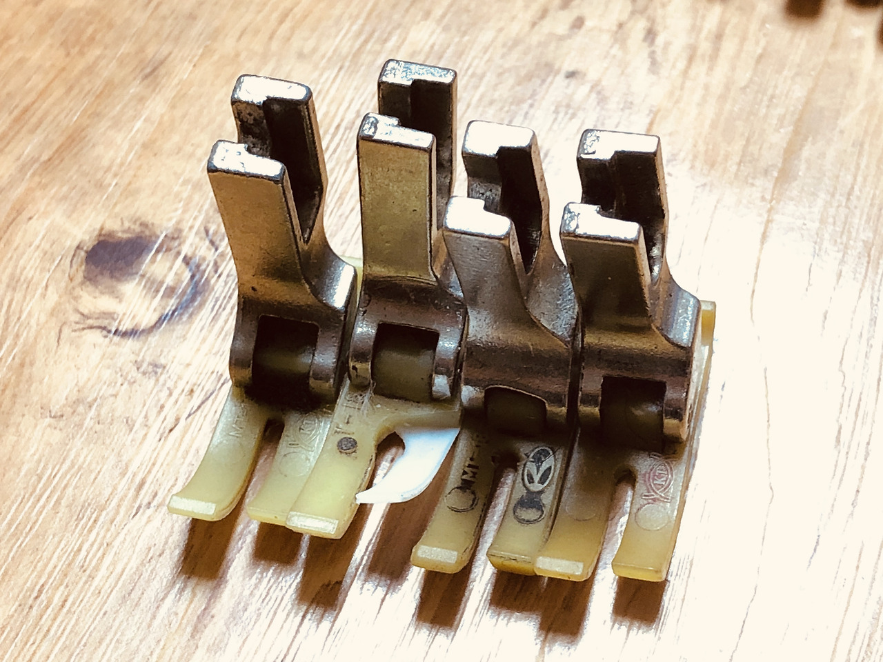 외발 노루발이다. 원래 잘 못 세우는데 용케 세워서 사진을 찍었다. 전부 오른쪽 방향이고, 왼쪽 방향 노루발도 있다. 방향감각 없는 사람은 내가 뭘 써야 할지 엄청 고민하게 만들 요물이다. 이번에 동대문에서 구입할 때도 사장님과 우리 모두 헷갈려했다. 사진에 보이는 방향의 외발 노루발을 많이 쓴다는 후문.