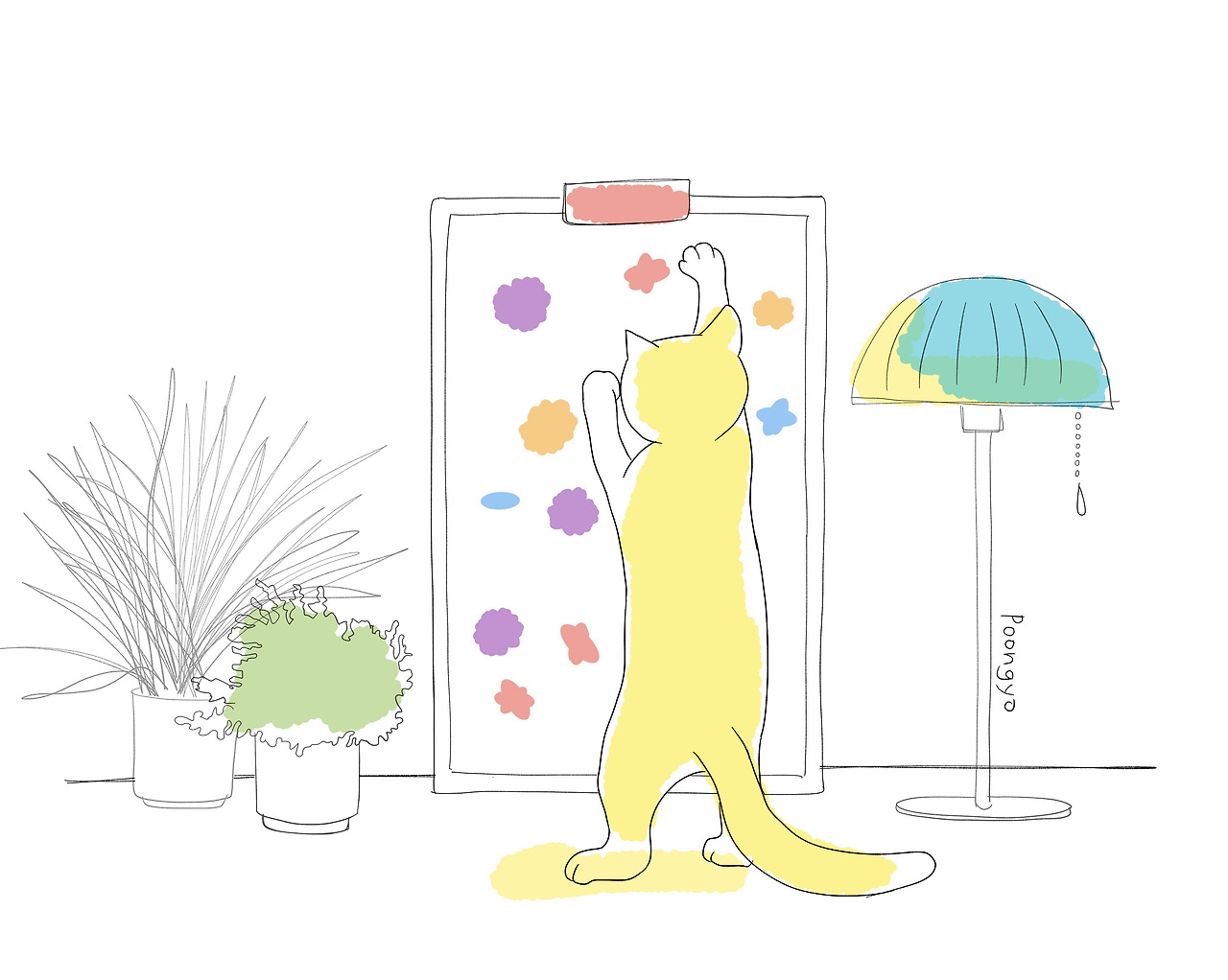 그래서 무엇을 그릴지 잘 모를 때에는 무작정 다른 사람의 그림을 감상하고 마음에 드는 그림은 따라 그려보라고 말하고 싶다. 물론 따라 그리되 내 것처럼 홍보하거나 업로드하는 일은 없어야 한다. 다른 작가의 그림 공부가 어느 정도 이루어지고 나면, 자연스레 자신만의 창작 그림을 그리고 싶다는 생각이 든다. 이때는 자신이 평소에 좋아하는 사물, 자연, 인물에 대한 이미지를 모으고 자주 손이 가는 색들도 기억해두는 게 좋다. 내가 그려 놓은 그림들을 들여다보면 비슷한 분위기나 색감을 발견할 수 있다. 그게 자신만의 색에 대한 감각일 것이다. 자신도 모르는 사이에 내가 원하고 좋아하는 것을 찾아가기 때문이다.