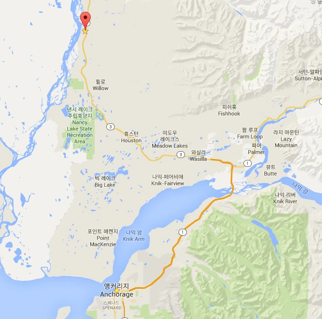 한차의 짐을 싣고 캠핑장으로 이동. 알래스카 공항에서 4시간 정도의 거리. 마트는 2시간가량의 거리 즉 공항과 캠핑장의 중간지점, 결국 서울에서 대전까지 마트를 왔다 갔다 해야 했다. 공항(앵커리지), 마트(와실라), 캠핑장(수스티나) 이렇게 지역명을 참고하면 된다.