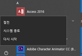 절전, 시스템 종료, 다시 시작이 그것이다.