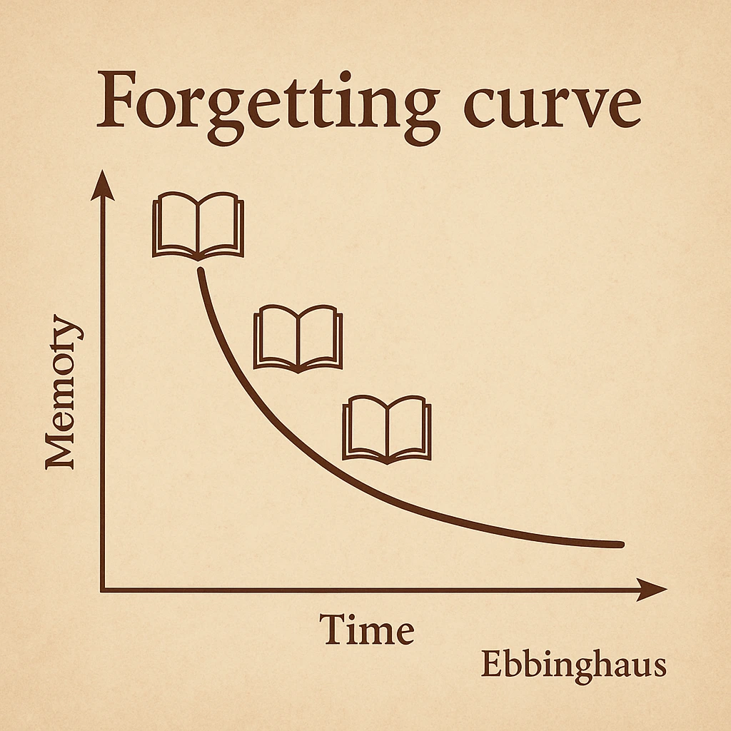 사람이 학습한 것을 얼마나 빠르게 잊는지 보여주는, 아주 유명한 곡선입니다.