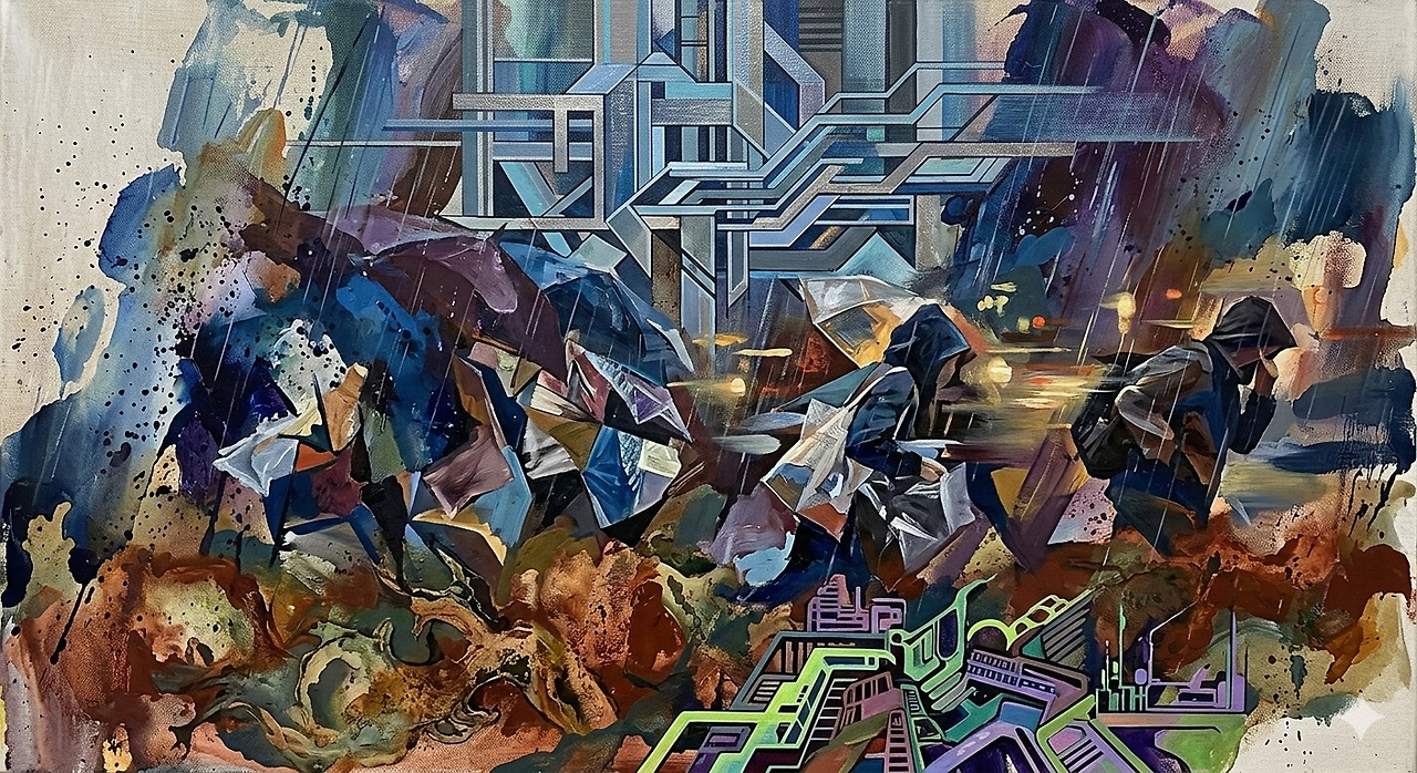 퇴근 시간에 시작된 비 앞에서