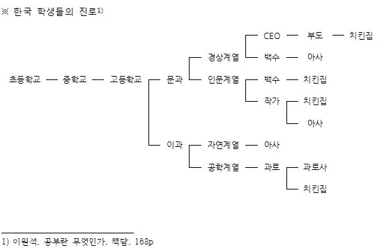 공학계열의 미래는 과로사와 치킨집이라는 사실을 보며 거부할 수 없는 진실의 무게를 느꼈다. 그리고 실제로 과로로 인해 쓰러지는 일도 생기고, 눈의 핏줄이 몇 주 간격으로 터지며, 마음은 모든 게 짜증 나는 상태로 변했으며, 운동을 해야 하지만 할 시간과 의지가 시의 박약에 이르러 있었다. 그래도, 과로사는 안 되겠고. 퇴사해서 뭐라도 해보자 하는 마음을 먹는 것이 자연스러운 프로세스였고, 치킨집은 경쟁이 치열하니 아이템을 찾아보자 하는 생각에 이리저리 마음이 분주해졌다. 때마침 유행한 퇴사 관련 책과 인터넷의 짤들은 나의 원동력을 제공해주고 있었다.
