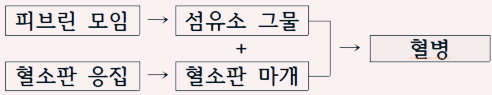 혈액 응고는 … 피브린이 모여 형성된 섬유소 그물이 혈소판이 응집된 혈소판 마개와 뭉쳐 혈병…를 만드는