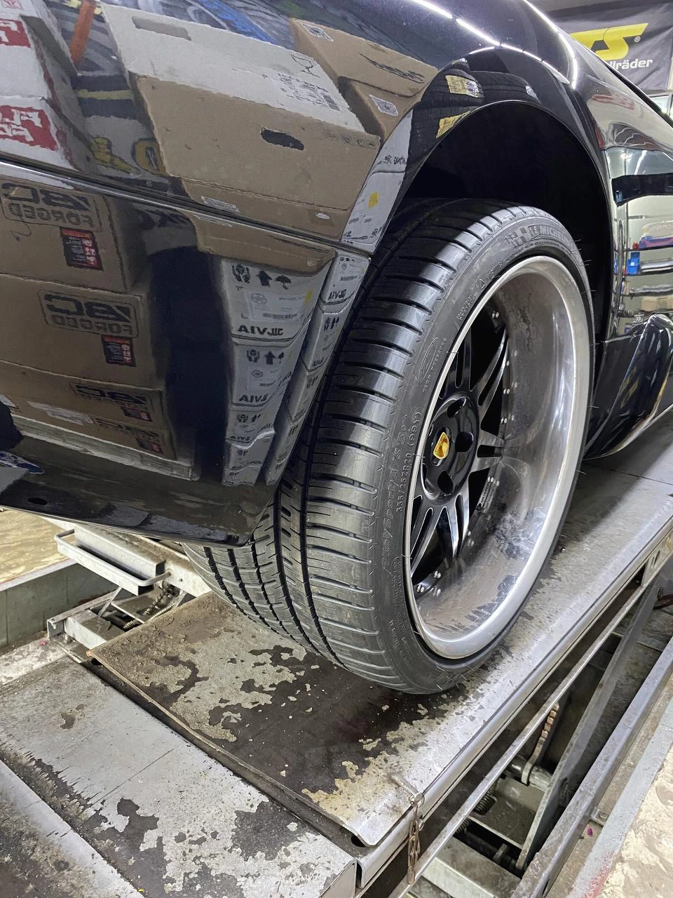 사이즈는 앞 타이어는 뭐 흔한 사이즈(235 35 19)인데 뒷타이어 사이즈가 (345 25 20)이라서