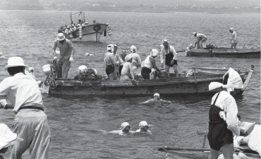"유리잔을 눈에 끼곡/테왁을 가슴에 안고/무쇠 비창 손에 차곡/지픈 물속 들어보난/수심 전복 하서라마는/내숨란 못 하여라" 이른바 작업의 순서다.