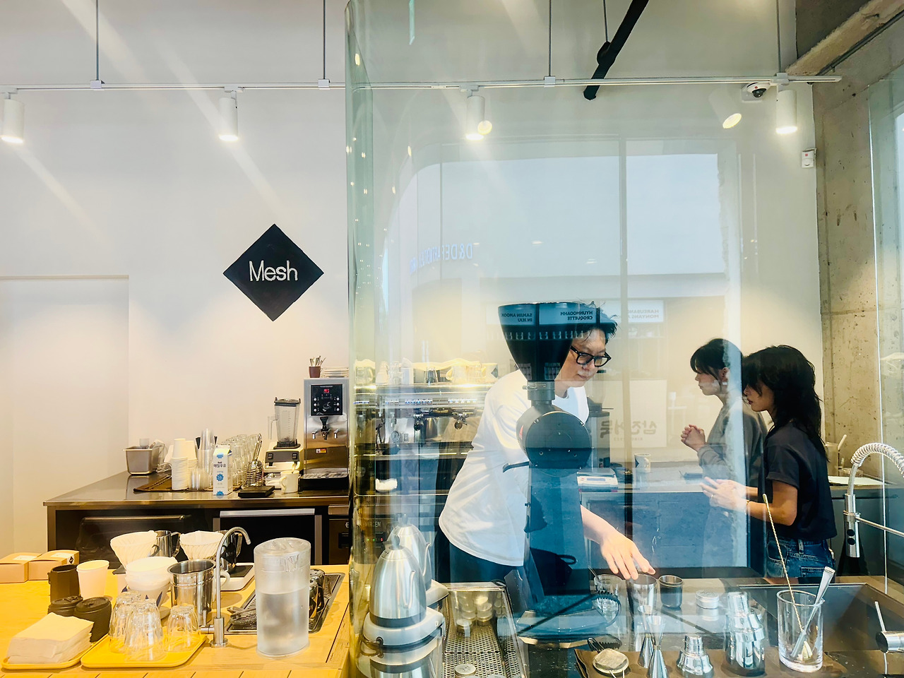 메쉬의 커피는 재료가 잘 드러나는 새로운 취향과 자유롭고 다이나믹한 서울과 평화로운 제주의 분위기를 담아낸다. 일상적인 커피에 다시 즐거울 것, 즐길 것-신선하고 깔끔하며, 산뜻하고 밝은 뉘앙스의 산미와 자연스러운 단맛-을 얹는다. 무겁지 않으니 허용되고, 굳이 특별할 필요가 없어 편안해진다.