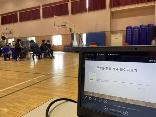 10대 초반의 아이들에게 그런 얘기를 할 수는 없었다. 오랜 고민 끝에 책을 쓰는 과정에서 느꼈던 것, 미술이란 장르를 통해 ‘오늘’을 보는 방법을 얘기해 주기로 했다. *튜브처럼 자극적인 무엇은 없지만 익숙하지만 몰랐던 것들을 귀띔해 주는, 일종의 재연 프로그램 콘셉트를 빌렸다. 아이들이 태어나기도 전에 제주도민 투표로 결정된 ‘제주 10대 문화 상징’으로 시작했다. 마침 책이 제주를 품고 작품으로 풀어낸 제주 지역 예술가에 대한 얘기여서 ‘딸기에는 우유’하는 정도의 쿵짝이 맞았다.